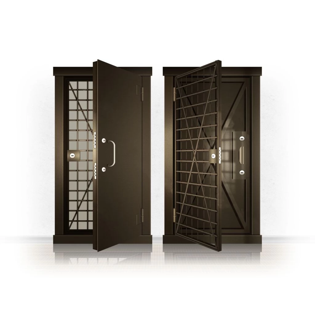 Металлические двери КХО и КХН представляют собой входные блоки, обладающие высоким уровнем взломостойкости и состоят из трех основных элементов: усиленного каркаса, сплошного металлического полотна и решетчатой двери. Дверной блок изготавливается из стального уголка 100*100 мм. Места крепления блока к стене цементируются и закрываются стальными наличниками шириной 40 мм. Крепеж заходит вглубь стены на 80 мм. В конструкции внешней створки монтируются ребра жесткости, для обшивки используется сталь толщиной не менее 3 мм. Внутренняя решетка изготавливается из прутка диаметром 16 мм. Размер ячеек решетки должен составлять не более 15 на 15 см. В точках пересечения прутья надежно приваривают друг к другу. В КХО и КХН необходимо поддерживать определенную температуру и влажность. Для этого внутреннее пространство глухой двери заполняется теплоизоляционным материалом, а по периметру двери приклеивается уплотнитель. Такие двери оборудуются замками с повышенным уровнем взломостойкости. Специализированные двери КХО и КХН в Чердыне могут быть оснащены сигнализацией, в конструкции могут быть проушины для навесного замка и элементами для опечатывания. Если идет речь о двери в комнату хранения оружия, в створке оборудуется окно для выдачи оружия и спец. средств, которое накрывается стальной дверцей.